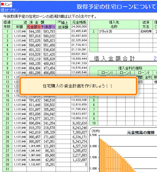 目先の収支だけではなく、長期的に考えての有利な住宅ローン選び、毎月返済額や返済年数、頭金の金額など、まさに弊社の家計キャッシュロー表の作成を基にしたプランニングがぴったりです。