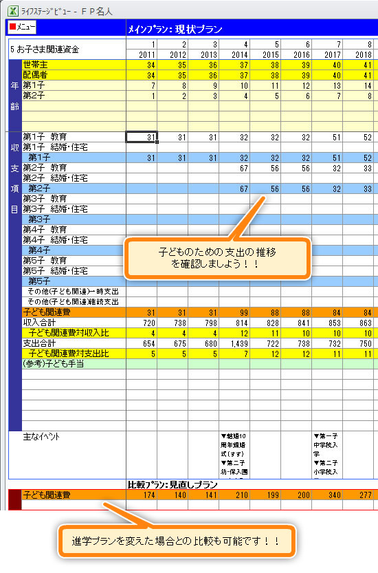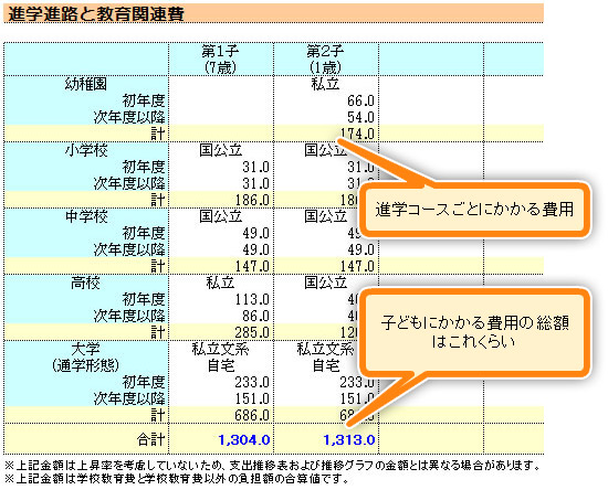 - 私立にした場合、公立にした場合それぞれの将来収支予想を作ってほしい。