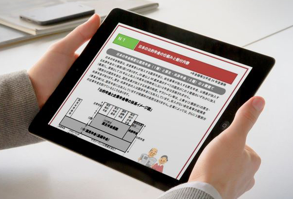 Windows搭載のタブレットなら「FP名人データ集」の利用も可能。 FP名人データ集をタブレット端末で利用すれば、重い資料を持ち歩く必要なし! 説明資料をその場でご確認いただくことが可能です。
