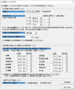 比較する平均値を単身世帯・2人以上世帯に加えて、都道府県別・世帯年収別で選択できる